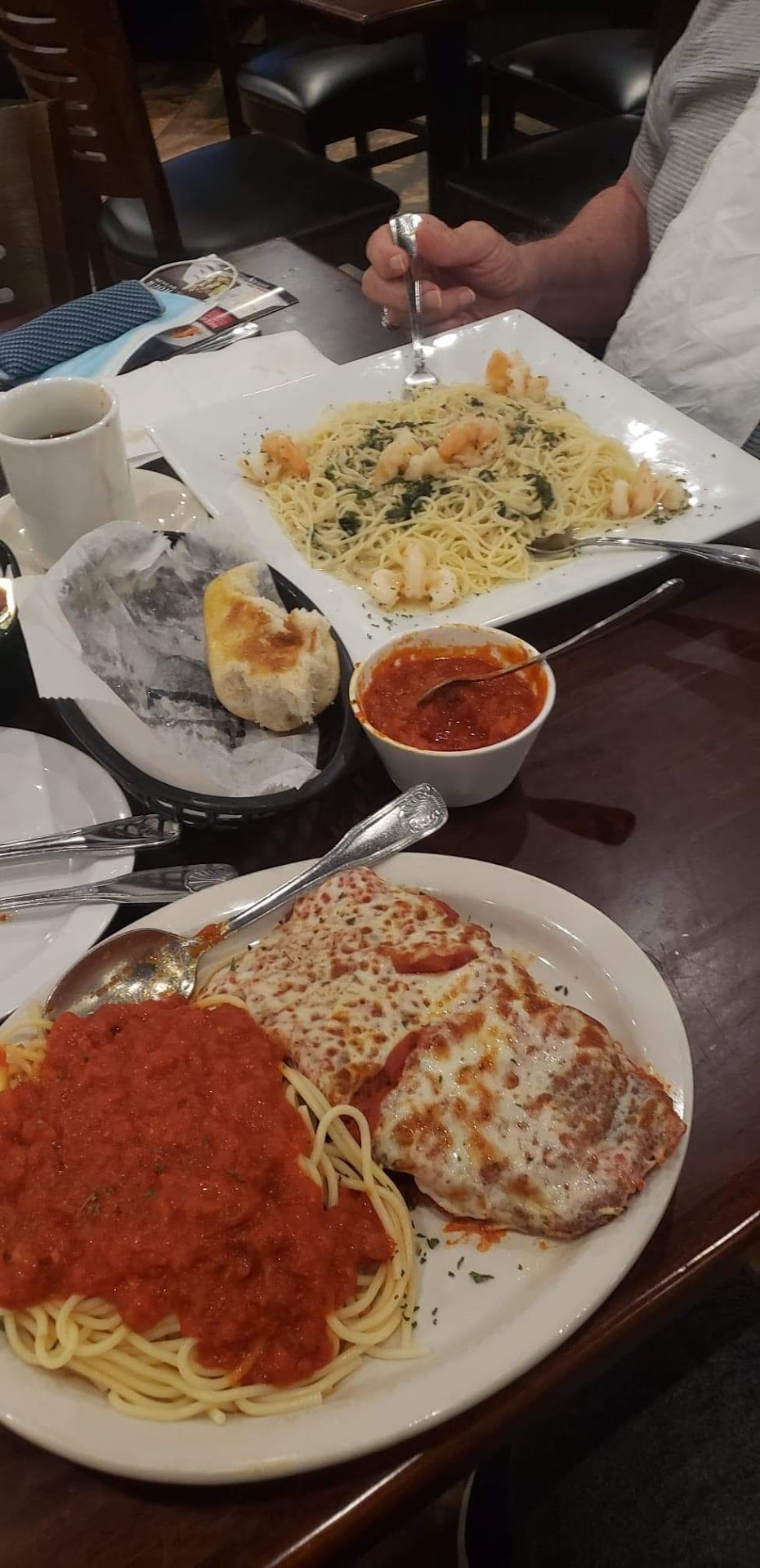 Went here on 5/14/2021 Friday at lunch. Have to say it is much nicer inside than I thought it would be! You see mini mall strip & think generic tables & chairs..no way here! Very nice inside! Nice decor, booths, tables & bar. Decor is right up there with any main stream restaurant! Waitress was Lara & we didn't have to wait long for food. We are retired so no rush. But great service! We both got sodas (coke products! Yes!) Husband ordered a 12"pizza w/2 toppings. I got lunch Spaghetti w/the works. Also a ceasar salad ($1 extra) since not house salad? Anyway, ceasar is more of an oil base not the creamy base. Not great. I suggest they go to creamy, oil isn't great. But it was a good size & fresh. You also get bread free. Big basket & hot! Buttered but not to the extreme which I like! Ok the spaghetti w/the works...if you LOVE MEAT - this is for you! Carnivores rejoice! When I say meat sauce I mean MEAT! Not the meat sauce in some places where it is all sauce & maybe a meatball or specs of beef.Theirs has meat sauce, meatball, sliced sausage, mushrooms over marinara sauce w/spaghetti marinara sauce & Sherry wine (their description). OK IT WAS A LOT! More meat than pasta, which is rare! I took that home -boiled more spaghetti & put that on it-another whole meal! I don't eat a lot. I am sure there are people who would eat it in 1 sitting! And this was LUNCH! Husband liked his pizza! Thin crust but enough "crust" at the end like we all like it! Just right amount of sauce (have your choice of sauce too, look at menu pics). Overall, very happy we stopped! A friend highly recommended them! Our bill for all that was $25.42. Say what! AWESOME! My only mild concern is the tables are very close to each other. I don't like being squished (has zero to do w/covid). I prefer a booth, but all were taken. Wasn't a problem since it wasn't at capacity...