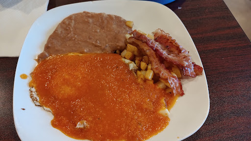 Read moreThe breakfast here was good, I ordered the Huevos Rancheros and for $6.99 you get 2 eggs, refried beans and potatoes (the bacon was extra).