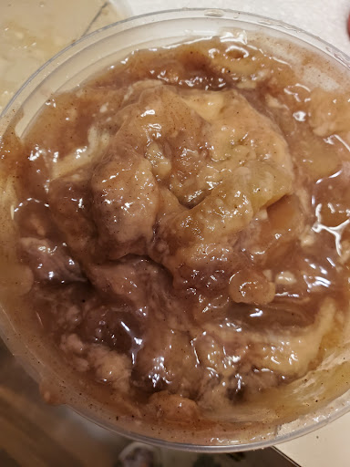 I feel like I picked up food from somewhere totally different than what the other reviews say. We walked up to order our food. That was our first mistake. The order taker wasn't very friendly. It took thirty minutes, not exaggerating, for us to get our order with 3 people in front of us. Someone walked away after waiting too long for someone to take his order. It was chilly outside, they could've told us it was going to take awhile so we could sit in our car and wait. This was our first time here and it was dark, we didn't know there was a drive thru. They were moving the drive thru way faster. We opened our food (one sandwich, a side of sausage, and two cobblers) and the brisket smelled funny. Barely any on the sandwich. The sausage was dry. The BBQ sauce spilled in the bag because the lid wasn't on all the way. The peach cobbler was ok, the apple (see pic) wasn't done or something. It went in the trash. Order taker would hand you your food, shut the window real fast and walk away. We won't be back. It's very unfortunate because we are moving a few minutes away and we were really hoping it would be good. I also understand they are short staffed but the quality of food and friendliness of staff is my biggest complaint over length of time it took to...