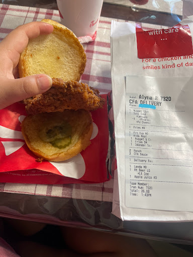 Foodborne illnesses are real. Food should never be delivered, taken into someoneâs home, and then redelivered to another customer. Thatâs unsafe and violates health codes. I thought Chick-fil-A would be one of the most reliable chains for delivery. I was wrong. Be cautious. Your health is worth more...