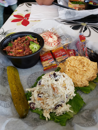 Read moreHave to say I am a huge fan of chicken salad on everything (salad, sandwich, as a dip). Stopped in to this new location for a lunch treat and I am so glad I did. Walking in the place is very clean and the atmosphere fits perfectly with the concept ( cute southern homestyle decor). After standing in line staring at a menu trying to make a choice on all the yummy options if chicken salad. The owner ( who was sweeping -love it) walked over and walked me through the menu and informed me i can try any or all of their 15 different chicken salad options. The lady taking my order as well as the rest of the staff are very attentive and friendly which is not always common. I ordered the jalapeno holly with a side spinach salad. The chicken salad was very creamy and the jalapeno game it some kick. It was MOUTHWATERING GOOD!. The meal came with a pickle slice, crackers, and a lovely soft frosted cookie (the best treat).
