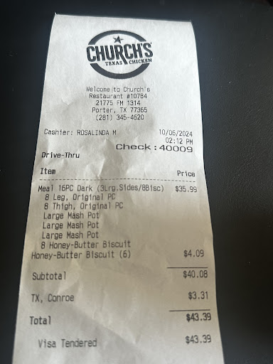 Read moreCompletely unacceptable (and consistently awful). We ordered through UberEats and honestly this was the worst we’ve ever received — not just from this location but from any Church’s Chicken. The chicken was completely stale and dried out, the fries tasted half-raw and undercooked, the mac and cheese was bland and clearly NOT fresh, and the gravy tasted like it had been reheated from the day before. This isn’t just one bad order either. Every single time we order from this location it somehow manages to get worse. It’s honestly embarrassing at this point — either the cooks don’t care or the manager is purposely telling them to keep serving old leftovers instead of making fresh batches. That’s the only explanation for food that tastes this stale. We’ve tried other Church’s locations and never had a problem — but this location is by far the worst of them all. It needs to be called out, because customers shouldn’t be paying full price for food that tastes like leftovers. Absolutely ridiculous. Do better. You guys are horrible, and by far the WORST location. DO NOT COME HERE. We’ll keep posting this review if you try to...