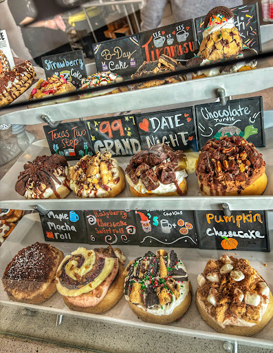 Read moreBoth the owners were there and very customer support service oriented, I was even given a free cookie dough shot, which was amazing!. Informative on the ingredients if you ask! And overall the experience was customer first based 🙌 there was about 12 different cinnamon roll options, along with brownie options that seem to be themed towards the holiday, cookie cakes, that looks beyond decadent, along with cookie dough shots 💯✅❤️🙌🙌 I actually showed up there on the day of national cinnamon roll day ✅ another lucky moment for this girl, and they had buy one get one free, I chose the tropical style cinnamon roll and they're s'more option to bring home. Both of which I ate the same day and was blown away of how soft and moist they really were❤️ so if you're having a craving for something sweet 🙌 this is your place! Conveniently located off of kuykendahl road and the 90. I will be back, but not regularly because I simply don't eat sweets that often. Still you have won me over as a lifetime...