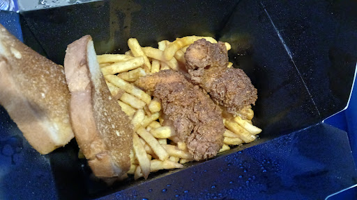 I tried the fries and the first few were crispy and hot but only about 5 of them were. The rest quickly were warm and not crispy( they obviously were not fresh) I bit into the sandwich and the chicken tasted odd( I ordered without the slaw)…. So basically I’m still hungry and I paid $17+ dollars for this disappointing experience.