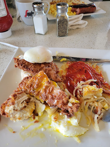 We have been wanting to try this restaurant for sometime. We were seated almost immediately, and then forgotten. The restaurant was not overly busy. We asked several servers if they were our server, and they said ânoâ. one gal finally stopped and said she would get our waiter. He arrived and apologized stating all of his tables had been seated at the same time. understandable! We ordered, received our coffee and waited and waited and waited. Finally, we got our food. My husband had ordered an omelette and pancakes and it looked good. I ordered a plain Belgian waffle and a side of bacon. The waffle was ice cold couldnât even spread the butter and the bacon looked good . I asked if they could heat up the waffle as it was very cold and the waitress, it was not our server, took the waffle back to be heated up. We never saw anything again, four or five times someone walked by and asked if we had received our waffle and we told them ânoâ. Our server was just absent. I finally asked if I could get a refill on my coffee, the gal, not our waiter, filled my coffee cup. She also went back to check on my waffle and said that they remade it, but nobody knew whose it was so it got cold again. She asked them to make it a third time. I asked the hostess if I could speak to a manager and she said she would get him she went into an office, came out, but no manager ever appeared. after about 15 more minutes, and no waffle, the waitress, not our server, brought us a pale whitish, uncooked waffle that was gooey in the middle. The waitress saw the batter, run out of the middle of the waffle, and offered to return it again. I told her not to worry about it. My husband had completed his breakfast sometime earlier. No manager had appeared two people stopped by to ask us if the manager had come to talk to us, and we said ânoâ. We never again saw our waiter. They did take the waffle and the bacon off the bill, we paid for my husbandâs meal and left. One more time, the hostess asked if we spoke with the manager, and we replied, he never stopped by. Then I went to my daughters house, where she toasted me up two Eggos, and I ate them. My husband said his meal was pretty good so we may eventually give this another try but extremely disappointed with food and with management. At this point, I...