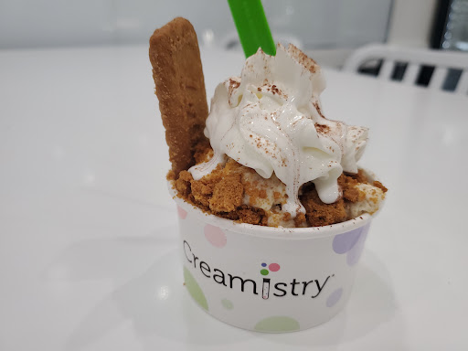 Read moreCreamistry ice cream is good, but not fantastic. I understand it's in a VERY expensive strip center, BUT $7.95 for a child's portion of ice cream (What they call the "regular" size) is pretty outrageous. I would expect it to be half that price. The "large" is $10.50! I also find these to be strange sizes. I have a tiny stomach from VSG surgery, and the "regular" was perfect size for me, but about child sized or half the regular portion for a normal adult. The "large" is HUGE. I guess you could get a large and split it among three normal adults or some kids, if you could agree on a flavor. I was sad my Cookie butter sundae was cookie butter ice cream, but didn't have a cookie butter sauce, too. That's disappointing b/c the texture of cookie butter is half if its appeal. The ice cream is good and has a similar texture to dip n' dots, because of the nitrogen. It's neat to watch as they mix it in the industrial mixers. Also, there are only tall tables except for 1 table, which could be an accessability issue. I just expected a bit more product for the price or a wow factor. We probably wouldn't go back specifically since other ice cream shops in the area use the same ice cream base and are less than half as much for...
