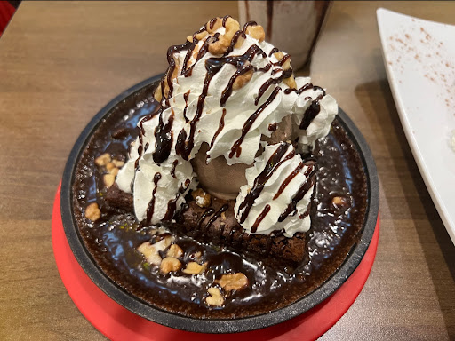I had the sizzling brownie with cookies and cream ice cream. There was an extra charge of almost $3 to change the ice cream flavor from vanilla to cookies and cream. The brownie was surrounded by a bed of hot fudge which was super good. The brownie was soft and sweet. Cookies and cream ice cream was not too bad. The dish on the whole was pretty good.