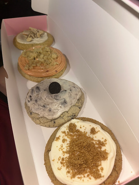 When I arrived, I was greeted by one staff member. Very polite, well versed in what Crumbl has to offer, she explained everything to me. Meanwhile, to the left of the register there was another worker. Jaidee, she was speaking to what I thought was another customer, showing him things on her phone and having a conversation. During this time, there were "dings" and "honks" going off. I was informed by the first worker "those are app orders and carry outs, excuse me while I get those orders done." I told the girl "that's ok, take your time" as I still didn't know what I wanted to order.