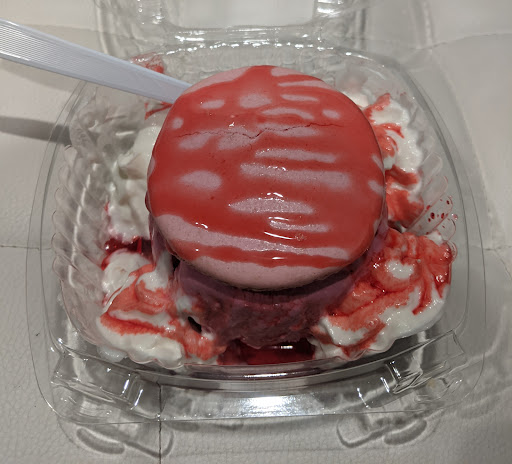 Read moreFirst time visit at this snack shop, pretty efficient when it comes to generating snacks. Simple selection is excellent, with a handful of custom options. I asked for a strawberry macaroons, I pulled up a recent one from the previous reviews. But as you can see it was not delivered equal to or same. I was there upon closing time, so that might have been the slack in preparation my snack. All in all its another snack shop...