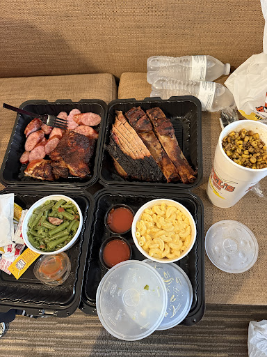 Been wanting to try this meat market for a while and finally got around to it today. They close a bit early (6:30) so if you’re wanting to catch dinner plan accordingly. We went for a late lunch and it was dead. By the time we left it was pretty busy with dine in orders and also to go orders. When you first enter you’re greeted by large case of meats to buy ranging from sausages, bacon, filets, stuffed pork chops and more. At the end of the line is the ready to eat food. Pretty basic menu, 1-3 meats, specialty meats including bacon wrapped chicken breast stuffed with boudin, bacon wrapped jalapeños, cheddar boudin and some different types of sausages. We got 2 2 meat trays with some sides. Meats we tried were spicy boudin link, cheddar boudin ball and regular boudin ball (massive!), Reo Sausage (jalapeño & cheddar, so freaking food) and bacon wrapped boudin stuffed chicken breast. Sides were dressing (very good!), Mac and cheese (could be creamier), pinto beans, mashed potatoes. By far the best side was the dressing, and they even some of their brisket gravy on top, let’s go!! By the our favorite meat was the Reo sausage! Creamy from the cheese with a little kick and crunch from the skin, was so good! The other meats were fine, not as flavorful and on the dry side. I would come back for that sausage and a side of the dressing! If you’re around and looking for some good meats give them a try. Plenty of options to take...