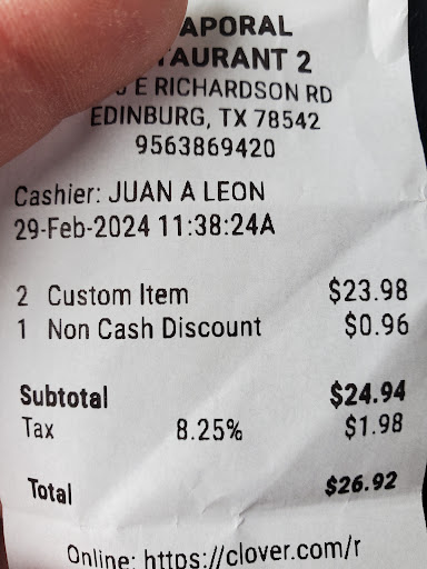 Read moreMy S/O and I went in for lunch and saw they had lunch specials so we have them a try, the waitress was not helpful whatsoever. She gave us a look and did not even greet us. They usually give chips and salsa but for some reason the waitress decides we weren't worthy of getting chips. I saw their menu and the lunch specials regular prices were a little pricy so I thought to myself we were getting a good deal on the plates. When we ordered the waitress seemed like we were wasting her time, I asked for a sweet tea and she brought me a water. I asked if they had sweet tea after words and she replied with "Umm yes" and I asked her again for one. I never got the drink. When she brought our plates she barged in and threw our plates at our table and left. I honestly do not know what her problem was. The food was good I'm not gonna lie. When we paid they ended up charging us the regular price for the Lunch. I got no receipt and she had the nerve to ask what was wrong with an annoyed face. My S/O didn't want to make a deal so we left. No "Thank you for coming" or anything. Like I said the food was good but the service is what killed it. I'm never going back to The Caporal. I recommend your take your food to go but be weary they charge extra for...