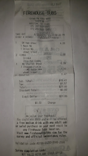 Pretty good food. Just wished I hadn't been asked if I wanted to donate, to the "fireman's fund", right after the Black female worker told the White female worker that I wasn't a police officer, but a "security guard", when she could see that I was in full Officer's uniform, getting ready to take my food to eat out, before going back to work! That felt like an insult to my uniform and my job as an Police Officer! I already know we don't always get the respect that Firefighters always get, but did ya have to say it out loud and in front of me. I don't mind having to pay full price, as it is a privilege and an honor, to be helped out once in awhile. But I had to look befuddled, at that comment, when she could see clearly that I was no "security guard", if she had just read the words on my Badge and patches. I'm sorry I must've offended her some way, even though I was only there to just buy a couple of sandwiches and chips and drinks for me and my girlfriend, who just so happens to also have a Police Officer AND a Firefighter for her brothers as well! I'm just glad she didn't hear...