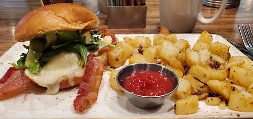 The seasoned, country potatoes that are served with The Elevated Egg Sandwich could've been seasoned a bit more and cooked a bit longer (either needs to be softer or crisper). They were a bit bland and too hard. My friend made several attempts at poking a piece, chasing it around the plate before he could actually stab it hard enough to pick it up. It was funny sight, but still – those were hard, undercooked potatoes.