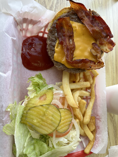 A co-worker suggested this place, so I went to check it out for lunch. It's a quaint spot in a small business park and I got there about 30 minutes before they were closing (they close @ 2:30PM), but the ladies behind the counter were very gracious. There was no one else in the place and it looked as if they had just cleaned tables and mopped the floors. I ordered a 1/4 lb. burger with cheese basket with onion rings and a fountain drink. It took just about 10 minutes before my food came out and I was able to get it down in under 20 minutes.