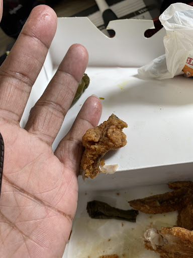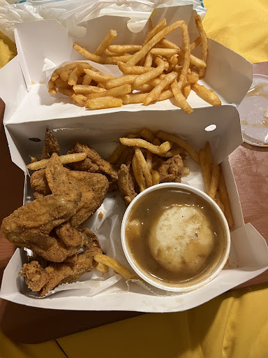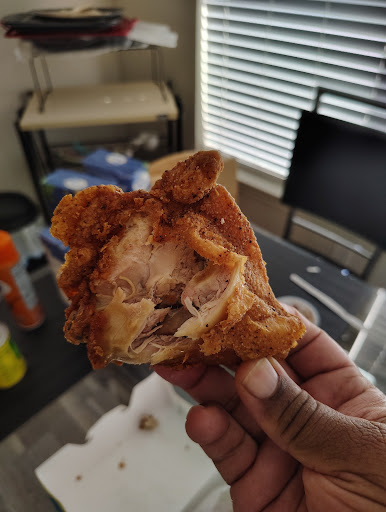 I usually check my food right at the window instead of pulling off, but since we had discussed the specifics of my order 3 times at that point I thought I'd be fine. NOT! Guess what I received? A 12pc, with 3 thighs, 3 drums, 3 wings, and 3 soggy breasts (that nobody in my home likes to eat, hence my specific order). I also received dirty rice and, you guessed it, GREENS. I also question how old the cornbread is, as the piece I attempted to eat was cold, mushy yet crumbly, and tasted sour as if it was going bad. This also meant no side for my autistic son, who specifically wanted fries with his chicken and refused anything else. The chicken itself was fine (besides the breasts which were soggy and greasy). I'd rate it above average, seasoned well, and tastes like someone's grandma made it. In comparison to other chains I'd say they're better than Church's, but not as good as Popeyes, which is problematic since again they cost a little more. The sides, however, were definitely not even a 5/10. I didn't like either of them, and the dirty rice in particular was a sad experience.