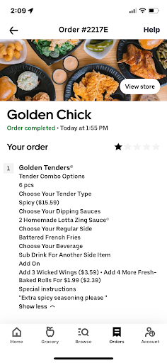 Ā Ā Ā Read moreEvery. Single. Time. I order from this Golden Chick I order the spicy chicken tenders meal and Every. Single. Time I receive my order it is plain chicken. I even have paid extra for the lotta zing sauce or have requested lotta zing dry seasoning packets but I never receive what I paid and asked for. As a paying customer if I order an item and am not receiving it, that is very frustrating, but to experience this over and over and over again from the same location is outrageous. Please review the details of the online orders and please provide to customers what they pay for. Also today I ordered a side salad, and the description of this item says it comes with broccoli, which is the only reason I ordered it, but there was not one piece of broccoli in the salad. I love Golden Chick specifically for their uniqueness in the items they offer and I love their spicy chicken but I am not getting what I have been ordering and paying for and itās really pushing me to stop ordering from this business. Please please please slow down and look at the details of the orders!! A girl just wants her...