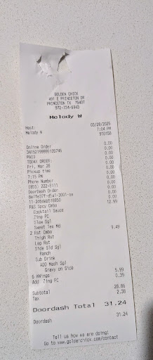 Read moreStopped by today because we saw this location on our way home because we were going to our usual spot but since we saw this location we said we would stop there. Terrible terrible terrible!! They got our order wrong and when I called the person who said she was a manager explained we had to drive back to Princeton and return this chicken and get the correct one. She said she would be able to refund the money but she put me on hold for 20 minutes and then hung up the phone. I called back no answer I called again no answer. By then I'm like they are looking at my number and not picking up so I had my husband to call and guess what? They picked up. WOW. A guy answered and I explained it to him and he was clueless and I asked where is the other lady who said she was a manager? He said she left. Whatttt??? What a total mess, no customer satisfaction or anything. The guy said he was waiting on the manager. He put me on hold and finally he came back to the phone and said we would need to bring the food back to get a refund. I wasn't trying to get free food or drive from Melissa back to Princeton. In stead I will write a review. Never going to that location again we will drive to the McKinney location at least they know how to take care of their customers. Someone needs to retrain that lady and make sure everyone knows customer service is how you keep a good customer. Also make sure your boxes on the outside can be readable. Repeat the order back. We will be more aware to check before leaving any drive...