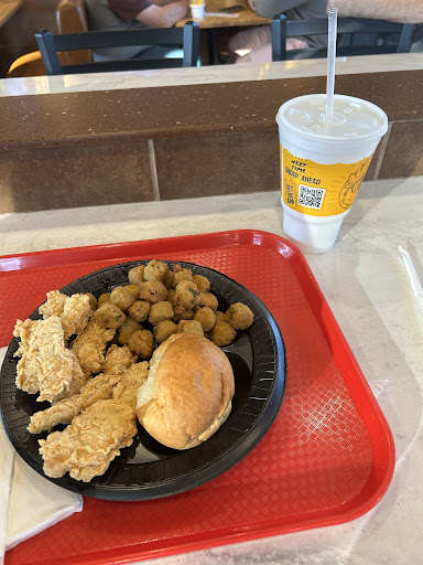 Read moreThis location consistently under-seasons the spicy chicken tenders. One side of the tender will have barely any spicy seasoning, and the other side is completely naked and bland, like they could even be bothered to thoroughly season it. I do like Golden Chick and I come to this store regularly and just know to ask for extra Spicy Zing packets for my chicken so I can season it myself. Tonight was such a letdown. I came through 30 minutes before close, and as a fellow fast-food service worker I understand that can be really annoying, but after getting off of my own shift I was really hungry and nowhere else sounded appealing to me. Guy at the order-box/window was so rude. He kept interrupting me and rushing me through my order. He didn’t say a word to me or even greet me when I got to the window, just stared at me with his hand held out for my card. Kept giving me fake half-smiles like he was annoyed I was even there. I was very respectful and again, understanding that it was almost closing time for them, but I got treated like I was the a-hole for even bothering to come through. I feel like the treatment I received was so sad. Worst service by far tonight, and they didn’t give me the extra gravy OR the extra spicy packets for my chicken. This is what my chicken looks like. Extremely dissatisfied tonight. I hope things look up because I really do like...