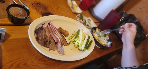 Re: Owners response: Your reply was dripping with more flavor than your meat. And there most certainly wasn't half a pound of meat and the ribs were long with little meat but lots of grisel. The sides were three bites each at best (two really). "Very high quality" is in the eye of the beholder or in this case, customer. And like I say near the end of my review about tons of potential One-Time customers....and I really don't care about other people's opinion regarding their experience at your "restaurant", as it is my opinion about My experience and I have the right to share it. You should pay more attention to a cookbook than what is written on google. You're just lucky I can't rate your place a No-star. Cindy's curse was alive and well dining at this place. We would have been far better off driving out to a truck stop by Brownsville....What is it with me and "cosy" downhome cafe and restaurants? I don't do fast food so I guess I am just bound to a self-fulling destiny...or curse.....nuts! We were in the area to see the Waugh Bat colony and thought we would catch a bite and my friend wanted BBQ, so we googled locations. My curse of course wound us up at the Hickory Hollow. It is nothing more than a trailer park cafeteria complete with melamine plates, a "buzzer" to tell you to come get your food and all you can handle "we think we are being clever with our sarcastic signage but we are really just cheap as hell" ....signs. The salad bar looked ok but I generally stay away from them with my curse and all. A sign, of course, told you the salad was extra cost in some sort of non-clever verbiage. There was a lovely shelf with self serve condiments, napkins and cutlery area adjacent to the 4 foot area holding the female bathroom entrance, overloaded and gross "busboy" cart and kitchen entrance. Yet another clue I missed telling me to flee. And I regret not taking a picture of this area...I think I was in shock and forgot my duty to fellow humans. Our Sampler platter was extremely disappointing. (Warning: objects in food picture are smaller than they appear...) The serving size for $16 and tax was less than stellar and then there is the taste....or lack of. You can't serve up sausage (actually had a bit of a bite), a small portion of what I think was brisket and two measly meated ribs, smother them in BBQ which wasn't even Sweet Baby Rays worthy, and call it anything but a memorable meal, in a bad nightmarish way. The "southern green beans" were canned beans with small slices of onion cooked in the can water and butter and drained off (mostly) into the smallest of bowls. Rubbery and tasteless...or even less than tasteless (if that can be a thing). The fried Okra was indeed fried, and that is about as accurate as I can be with that. The staff are less than engaging, taking your order like we were interrupting a heavy CEO meeting. I should have taken the hint by the walk-in, cafeteria style system. But I have been to Pappa's which has a similar system but actually has food worth waiting for and portion sizes you could actually share and take home leftovers. But I digress. Hickory Hollow looks like it has been around for a long time which is why people think "well, it's been around forever so it must be doing something right..." but in truth with 7 million people plus visitors and repeat customers with no taste buds, this place could be around forever, God help us. Save your money, time and stomach and hit the next place on the google list, ask some locals or at the very least,...