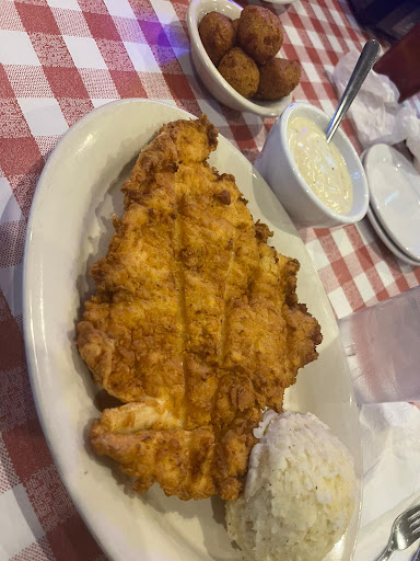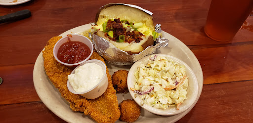 Read moreOur 1st time there, pretty disappointing. The dirty rice was dry, the second batch was dry, the 3rd attempt was edible. The hush puppies tasted like they were soaked in grease and left they to soak up the grease, I couldn't eat them. The cat fish was delicious and juicy, just like I like it. The tartar sauce was not good, it didn't have much flavor besides the flavor of mayonnaise. The iced tea..... wow, what a failure!!! Who screws up on making iced tea, unless it was fountain tea, which it may very well been because it was all water, no flavor, not sweet at all. The ice inside the glass wouldn't even get it cold cold. The steak was undercooked. The baked potato was small, and they charge extra for that. The cole slaw was ok but I didn't really like it. The cabbage was cut into thick tiny sized squares and loaded with mayo that was so heavy you couldn't really taste the cabbage. There were not that many people inside this place, at 6:30 pm, and we now know why. The service was good, the waitress tried really hard to make it a good experience for us. We will not be going back there again though. There is no desert menu btw. There is a full bar there, not sure what that was like though. The decor is OLD, VINTAGE, and lots of TVs throughout...