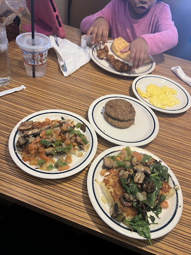 Read moreI begged my husband to give ihop another chance since he never wants to go because he says it’s always trash but our kids like pancakes so this was the spot after church. The wait was only a few mins and they were surprisingly not busy so that was a plus. Our server was pleasant. As vegans we’re limited on what we can order so I love that they have meatless sausage now. I don’t know if it’s how the server rang up our order or the cooks’ strange plating choice but they put our double hash browns and veggies on 2 separate plates so that’s 8 plates (counting the pancakes and sausage) for 2 people causing the table to be crowded so we had to ask for a bigger plate to merge everything. I always order this same meal at another restaurants and they take the liberty to make it look like a meal all on 1 plate. Anyway, it all looked good but the potatoes and veggies were cold and sausages weren’t hot either. It wasn’t busy in the restaurant so my husband was extremely upset because he said the server was talking to someone as the food sat in the window. He refused to eat any of it and I was starving so I ate it anyway. The server wasn’t very apologetic but she did have the manager take his food off the bill but he had to go home hungry instead of them offering to remake it. It’s just sad because I’ve always loved IHOP but its giving...