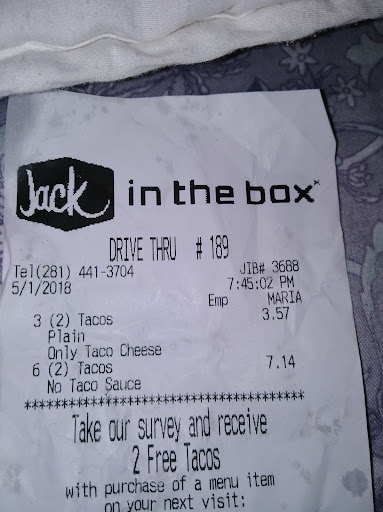 Read moreI usually visit this Jack in the Box because it's close to my job. Tonight around 2:30 am, I ordered food. When the cook handed the food to the clerk, the clerk looked at me and started laughing. She walked towards me with a smile on her face and then handed the food to me. When I got to work, I called the Jack in the Box to express my concerns. When I spoke to the manage, she was very dismissive and told me to keep my receipt. That's when I decided to return to the restaurant to get a refund. When I got there, I asked the clerk what did the cook say to you when he handed the food to you. She didn't answer the question. She said sir I don't even know you and the cook doesn't speak English. The manager said to her don't even stress yourself over that, and closed the window. All three of them went to the back of the restaurant for a couple of minutes. The manager reappeared and told me to come back in the morning to get a refund. She said the district manager will give me a refund. I told her the cook touch my food because your clerk did not tell me what the cook said to her when the cook handed...