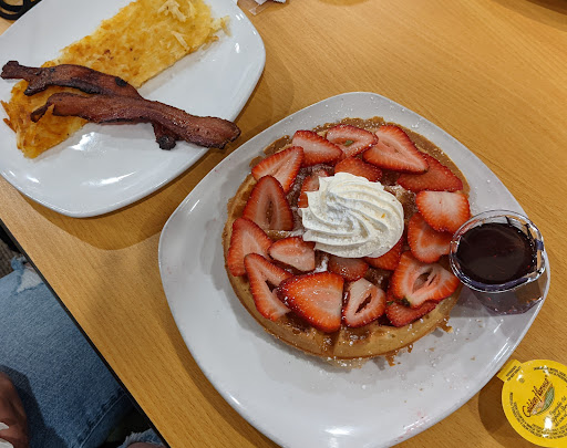 Read moreEh... it was just ok. It wasn’t the worst, it wasn’t the best. It is just a step up from I-HOP, nothing more and nothing less. I had the fudge iced coffee which was just iced coffee with whipped topping and chocolate sprinkles. For food I had the Reese’s pancakes with yogurt and tomatoes. The pancakes were so rich, I couldn’t finish them all. The yogurt was supposed to be vanilla with granola and strawberries, but there were frozen blueberries hidden and I was not prepared for that, nor were they good. My dad had coffee, eggs, bacon, sausage and pancakes. He said the meat was low quality. We had to chase our waiter down to pay the bill, after sitting for 15 min waiting. I’ve been sick ever since 10 min of...