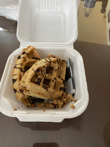 The LAST STRAW: I think what really turned me off to this place, was what happened two days ago. I just finished work and needed something sweet to take my mind off of my bitter workday. So of course super convenient, right next to me I went to go get a waffle from Just Love. I was in the drive through looking at the menu and saw a “Chocolate Chip Cookie Waffle” under their artisan waffle categories. I’ve had chicken and waffles there before so I knew that the waffles were a safe pick. So I looked at the price it was $8.95, definitely on the high end of waffle pricing - IHOP’s waffle is $5.99. I didn’t really bat an eye to the price because as I’ve mentioned before, I don’t mind the money if the food is worth it. I also ordered two caramel frappes with it. As I pull up to the window and hand my form of payment to the lovely cashier I was handed a bag. I go home and to my surprise IT WAS A HALF OF A WAFFLE. A HALF OF A WAFFLE FOR $9, THATS SUPER ABSURD, LIKE HONESTLY A HALF OF A WAFFLE FOR $9. That’s crazy, even if it was a full waffle that’s expensive, but 1/2 waffle for $9, what do they do with the other half, it’s a whole waffle maker they just throw the other half away? Like honestly this is ridiculous. - vent over