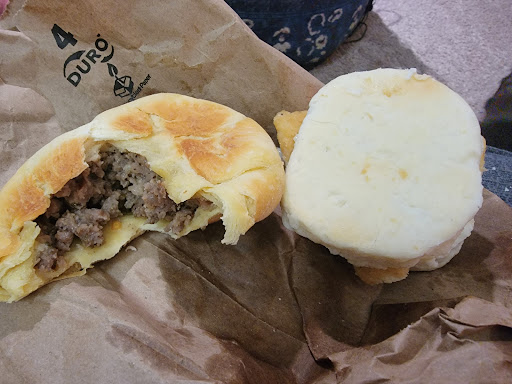 Ordered door dash due to karma kolache being unavailable. Never again. I ordered sausage and gravy as I always do at karma. There was no gravy and was extremely spicy which is not described. I also decided to try the biscuit waffle chicken honey butter. Looked up item on previous google reviews depicting a waffle chicken sandwich. There was no option to choose biscuit vs waffle so based on picture and lack of option figured safe to assume it was a waffle biscuit. No waffle when i recieved my order just plain biscuit that was extremly doughy and undercooked. My daughter took onr bite of the donut said it was gross and didnt finish it. My husband ordered the chorizo kolache and was disatisfied as well. Chorizo and egg were cooked seperatly leaving awkward portion ratio and clumpy stuffing.