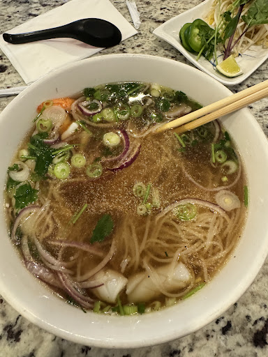 The ambiance and overall atmosphere of this place was nice and quiet and the lights were very bright. Customer service was great which was provided by a young lady that greeted me as I entered. She was very sweet and kind. I placed a to-go order for a large shrimp pho which cost about $14. She informed me that it would be about a five minute wait which surprised me because I was thinking to myself, "that's kind of fast." However, as promised, no sooner than I took a seat in the waiting area, a young gentleman emerged from the back with my order within five minutes. I was really impressed with his kindness as he handed me my order. He presented great customer service skills and professionalism. It's scary sometimes when you're trying a new restaurant for the first time and you're not sure what to expect. In my many past experiences, I have encountered rudeness and disrespectfulness from workers and owners which leaves one feeling a bit skeptical about trying something new. However, my experience at La Pho was such a nice and comfortable one.