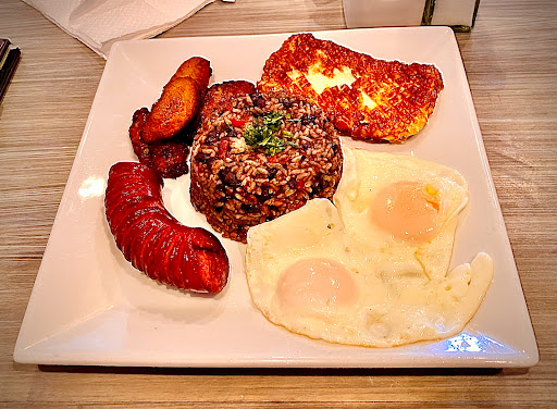 I've visited tiny Venezuelan-owned La Baguette Bakery & Bistro in Katy (21821 Katy Freeway) on many occassions since they first opened about 5 years ago. Not only is their food top-notch, but they also make spectacular coffees and fruit drinks. And now, they offer more than just their scrumptious Venezuelan specialties, including a gallo pinto that should make any Tico proud. It is served with two eggs, a juicy chorizo, fried plĂĄtanos, and grilled cheese. And yes, they use REAL Salso Lizano! The only way it could be better is with a few slices of aguacate, a dollop of natilla, and some hot sauce for flavor. But it was so delicious, it nearly brought tears to my eyes. If you don't see it on the menu, just ask for the gallo pinto plate. It's served all day.