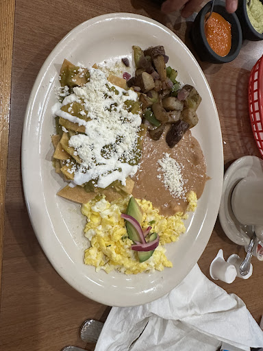 I ordered the chilaquiles with eggs and breakfast potatoes, and we also tried the avocado toast. The food was delicious, bursting with authentic flavors that made every bite enjoyable. The chilaquiles were flavorful, and the breakfast potatoes were perfectly seasoned. The avocado toast wasn’t quite what we expected because it wasn’t the typical mashed avocado on toast with eggs on top, but it was still phenomenal.