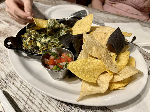 The Spinach and Artichoke Dip is very creamy and not overly cheesy. The pico de gallo it comes with is incredibly fresh, but the chips are a little dense and not as crispy as I would like.