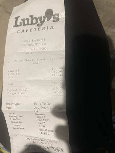 Read more5 stars since the late 70s if my memory serves me correctly! Grew up close by in Inverness Forest since 1974! We loved Luby’s, Wyatt’s and Piccadilly cafeterias all our lives! We will be forever changed personally when the day comes when we lose our beloved Luby’s at NW Hospital. I could never personally handle the public the way they so gracefully do! When my old, skin n bones Caucasian self walks in 15 minutes before closing for my to-go order, no matter how tired of standing on their feet all day in a hot assembly line.... they are nothing but nice to me! (golden rule for consideration is to not enter an eatery before closing and sitting down to eat or to order something that needs to be cooked at closing time)! Common sense! I plan on re-visiting this location at least 2 to 3 times a week until they are forced to close! I consider the whole crew as family! Worth every penny! My plant shut down & my car is about to shut down but by God I have Luby’s food in my fridge! I’m grateful to God for what I have left & that is a full belly & delighted taste buds! With their (RIP) grandma’s white gravy and my grandpa’s home grown farm fried okra..... I will be forever in your debt & will miss y’all something awful! I’ll be waiting for that TELL ALL Luby’s cookbook on how to replicate their food in the future! So sorry for the lengthy review! I was compelled to get it out there before they close up shop for good! God bless the whole crew at this location! You were and are loved by loads of complete strangers!