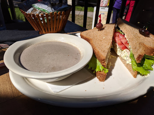 Loved everything about this place (except for one odd little thing... The food was delicious, from soups to sandwiches to the daily special (filet mignon tacos - nice!). Service was tough to judge since they had about 30 Red Hat ladies inside, all getting separate checks (really, ladies?). We sat outside on a beautiful day - great table, great food, but... the sound system is, and I am not making this up, a speaker on the floor of the porch that is connected to a microphone which sits inside, above a speaker. So you not only get the music, you get all the noises from the 30 Red Hat ladies, plus every time someone moves a table or slides a chair it drills right into your ears. So we'll be back, but we just won't do it when it's nice out, because you really can't sit outside. But the food is excellent, and the service probably would be on any other day.