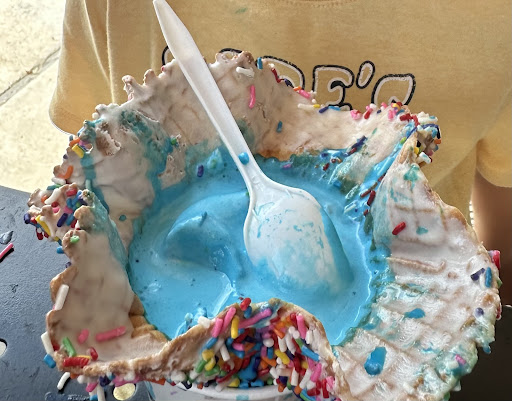 The ice cream was good but the ice cream bowl was stale and un - edible.