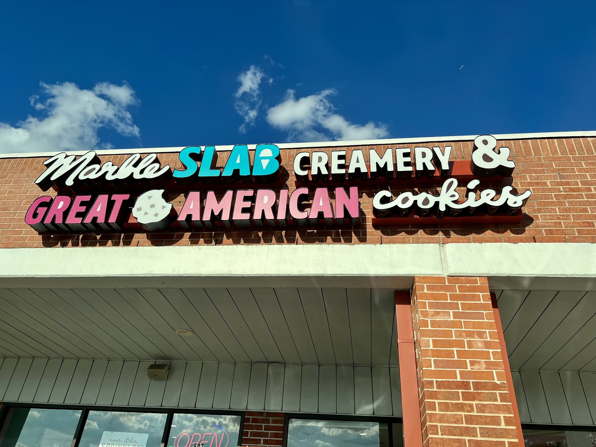 On 100+ degree day, ice cream just sounds refreshing. We hadn't had Marble Slab in a long time so we ventured out. The woman serving us was great - very accommodating and friendly. Good customer service. That's when it went south. The marble slab itself had remnants from prior orders including ice creams and candy. (We all know they should scrape it clean.) While fixing our order, another worker began picking up the topping spoons leaving our server one spoon to use on all toppings. Another worker had also begun mopping the guest area. We got our ice cream and sat down to enjoy it. It was delicious. However, the smell of bleach from mopping was overwhelming. It was 9:25 pm when we sat down to eat and they close at 10:00. We were the only guests and they could have (should have) waited until we finished to get a jump on their end of night tasks (especially mopping where we were sitting). We moved outside to finish due to the bleach smell inside. Sitting outside (on the only bench which is directly in front of the smelly trash can), we watched them pick up all the refrigerated toppings, cart them to the back and continue cleaning. The ice cream was good (5 stars) and our server was great (5 stars) but the feeling we were an inconvenience to the staff wanting to get out either before or right at 10:00 (1 star) will sadly leave us considering other options...