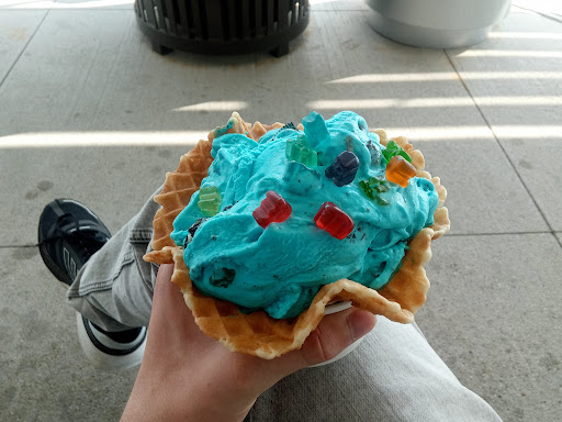 I myself I enjoy a waffle bowl, cotton candy ice cream, gummy bears, marshmallows,.and oreo bits. It sounds gross I know, but trust me...