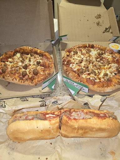 I ordered two large pizzas; one all meat with original crust and the second one was the deluxe with thin crust. I didn't like that they use canned mushrooms. This was my first time trying this restaurant. It's better than Lil Cesar's, but not better than Papa John's in my opinion. I was able to utilize the special buy one get one ordering online Tuesday special. Very satisfied with the price. Especially since I didn't know how I'd feel about it. It's located in a new strip area with plenty of parking. My pizza was ready within 15 mins. I wanted to try the wings maybe...