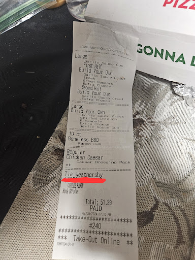 On August 30, 2023 at 07:26:46Pm transaction No. 106649660 I order a large double pizza sauce double pepperoni pineapple ground beff with the romesan crust cooked well done which was 23.49 two garlic butter dipping cup which was 1.38 and a 20oz mug root beer which was 2.75 total came out to be 29.90 the young lady who took my order was very nice and respectful here’s where my problem started once the pizza was done the young man brought it to the car before he walked away I said sir you forgot my root beer and as he was walking away I checked my pizza before leaving and noticed that my two garlic butter cups that I paid for was not in there so before he went back into the store I said and also my two garlic butter cups the young man came back with the root beer and proceeded to tell me that the two garlic butter cups were in the box and I proceeded to let him know that it wasn’t so he proceeded to go back in the store and talk to the manager which name she gave me was Zann so as I’m looking inside of the store I went in the store with my receipt to show I paid for it and wasn’t trying to get anything that I didn’t pay for the young man then accused me of taking them out the box his exact words to the paying customer was you took them I proceeded to let him know again they were not in the box and he states again you took them so I called my witness who was in the car when I checked which was my mother to verify that they wasn’t in there he again called me a thief right in front of the manager Zann that was working on tonight. She again allowed him to continue to call me a thief for something that cost 1.38 here’s my problem if I wanted 4 cups I would have paid for 4 instead of two at the time I made my purchase the young man was rude and very unprofessional and to accuse me of something I did not do. I want the video footage pulled and looked at the packaging of my order so you the owner can see that indeed it was not in there now if the person who puts the pizza in the box made a mistake and error and forgot to put it in the box understandable and no issue but to be insulated and accused of stealing something of such small monetary value is unacceptable and demeaning. The young man even accused my mother of lying a woman who has been on her job for 34 years and is 63 years old of lying. Then to add insult to injury the manger Zann proceeds to tell me she just going to give them to me as if she was doing me a favor but you can’t give me anything that I’ve already paid for not one time did she offer an apology nothing she even accused both my mother and myself of stealing as well. As a customers who just spent money at your establishment to be accused of stealing something that cost 1.38 was very unacceptable very demeaning very degrading very deplorable and very rude and yet an apology was not even given....