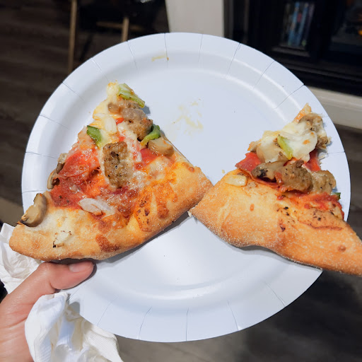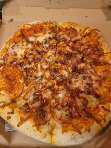 When he passes it through, after he turns the card over front facing assumingely to read my name then place the card on the counter and doesn’t bother to slide it to me. I say thank you for the service and no greeting or a word back. As all of this is happening my pizzas were getting done and I go wait, its only few three minutes before we get them. Only to realize home that while we were waiting to get our order after having terrible customer service, that the small pizza was barely even cut?? It was chopped two or three times giving us like three big slices and tiny ones, only realizing this of course till we got to our next destination. They did this while we waited for our pizzas? They knew what they were doing. Shame on them.