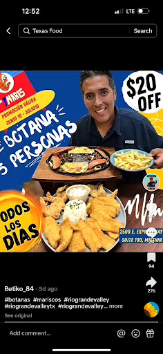 Ā Ā Ā Read moreI went to Mariscos 7 Mares located on the expressway by Shary road. It's on the left side of Walmart as you look at it. I went with my good friend for a late lunch. Once seated we ordered our teas and food at the same time. I ordered a ceviche tostada (which I never received)and the fish mojo de Ajo. Fish with garlic). My friend ordered a bowl of seafood soup. Some restaurants use butter as a medium for the garlic to create a sauce and to mellow out the garlic. Unfortunately the garlic on my fish was way to strong to even put in my mouth. It was finley minced to almost a puree and spread across the fish. It was as if I was eating raw garlic, I asked to switch it to the breaded fish. I was able to eat that with the hot sauces that were already on the table. My friend commented that his soup was flavorless and needed something else to enhance it.. I don't know if I'll ever go back again, more than likely it won't be...