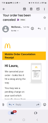 Ā Ā Ā Read moreDonāt visit this McDonalds after midnight. I was just at this location and placed my order as I was arriving Check-In# KN52-HG04LJ Order# KN52. When I got to the window, the staff told me my order was not visible! They could see my name and the order number, but the field to show what I ordered was blank. They said donāt worry, that the order that was missing would be refunded to my bank since it wasnāt finalized, and to place my order again. So I drove around and parked, manually cancelled the first order to be safe, then built the same custom order again. I pulled back to the speaker with Check-In# OG73-XW63XW Order# OG73 and was told the SAME THING. My order NAME and NUMBER were visible, but not my order itself. That was enough for me. I drove off and cancelled the order in the app. (Apparently this McDonaldās was also low-staffed since they were taking a great amount of time to get to everyone waiting at the drive thru! 34 minutes to get through on the first line. 10 minutes in the second line.) Anyone else have this problem? Iām on the most current iOS and McD app, and those combinations worked FINE at other McDonalds locations...