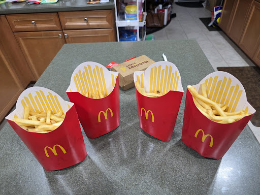 Read moreUpdate 5/17/2025: My order contained what were supposed to be 4 large fries (pic) but contained enough fries for only two. I even had to wait on my food so there was no reason to half fill each container.