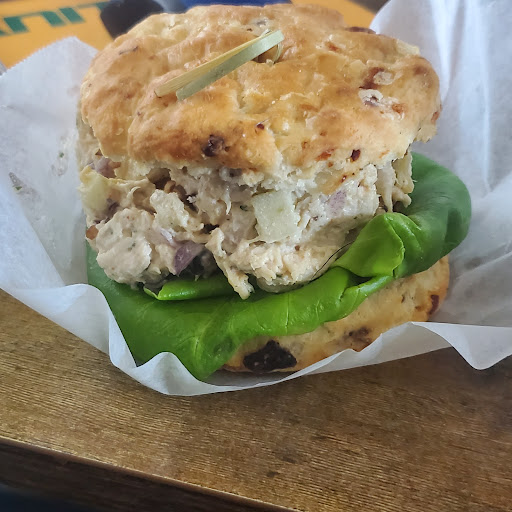 This place is so cute and the biscuits are amazing. I got three biscuit sandwiches this morning and we all enjoyed them. I had the chicken salad on rosemary biscuit and it was light and fluffy but also flavorful. My son's had the breakfast biscuits and they devoured them! My oldest said he just needed a hash brown and it would have been perfect lol. I will definitely be back many times. I cannot wait to try all of the yummy looking baked items. I also got a pot pie to go and can't wait to have that for my...