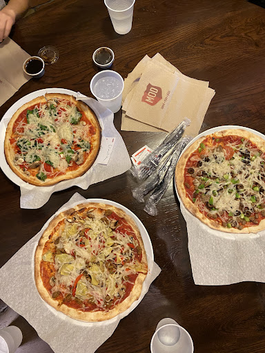 Read moreThis is really, really good, fast pizza. Not wood oven but it is a brick oven pizza. They will make your pizza any way you want it at no extra cost. We love the Mod with its thin crispy crust. They will even leave it in the oven a minute or two longer for a crisper crust. The sooner you can eat it the crispier it will be. Great habanero sauce and pesto condiment. Inexpensive and great food. You get to pick from a line like subway, anyway you want it. The staff is always friendly and accommodating. They also have salads and just like the pizza you can pick what you want on it at no extra cost. They have soda drinks, bottled drinks, tea and more. You really need to try it. 7/5/2022 We have been many times since our first visit. We have never been disappointed. The manager, Sarah Pacilio is the glue and inspiration to her crew. She is always smiling, positive, and friendly. She is all about making an consistent product and customer satisfaction. It is not quite the same when she is not scheduled to work. Don't get me wrong, the crew does very well carrying on without her but again she is missed when she is not there. I really hate that they don't put the paper in the box under the pizza anymore though. Still this is my favorite location and we will deffenatly continue to eat there. Especially if Sarah is...