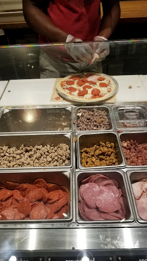 Very promising little pizza restaurant. I just tried it for the first time. The staff was very friendly and helpful. The vibe I get from this place is a pizza version of Chipotle. They charge you a flat rate for the pizza and throw in unlimited toppings, which for me, is the plus of this restaurant. Price for an 11 inch thin crust specialty pizza was $7.87. The service was slightly slow, only because they didn't have a cashier right at the register. But that is my only major complaint, and the service was otherwise well paced. It is the only reason I give it a 4/5 rather than a 5/5. The pizza was very good. I got the Mad Dog, which is their meat lovers style pizza, just to have a good context. The crust was super crispy, which I like with thin crusts. Pizza was right out of the oven. The ingredients were fresh. The sauce was good. I would recommend that they cut their pizza into eight slices rather than 4, but that is my personal opinion. Price was a little bit high for the drink in my opinion. $2.27 for a 24 oz drink, but you do get free refills. Restaurant was clean and in good order. All in all, a fine bargain if you like pizza. In my honest opinion, I think Pizza Hut and Domino's are in trouble if this quality service keeps up. I...
