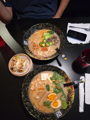 Read moreWe arrived early evening friday.. ordered a leaf bun and 2 tonkotsu large 3 proteins ramen.. I've never heard of a single egg being considered a protein for a dish and I eat ramen alot.. so that's my complaint usually restaurants charge for a extra eggs not the single that's usually included unless you specify none. Also spice is not hot at all... Louisiana hot sauce would've given more spice spicy tonkotsu is or should be red chili paste making the broth itself a deep red as you can see neither of ours had any chili paste or heat except the jalapeño my husband had to order to get heat,which is CRAZY..Asian spice is HOTTT a jalapeño should have been tasteless in a spicy tonkotsu.. but alas this is a high Caucasian area with upper middle class Caucasian who think a jalapeño bomber is Hot .. but for this blended couple ( and I'm white) there was 0 heat even black pepper could have made a diffrence in this.work on what a spicy soup actually is do better for your culture.. cus that was saddening.. otherwise prompt cooked well .. and NO THEY DO NOT HANDMAKE THEIR RAMEN OR ANY NOODLES I TOO SHOP AT 99 RAMCH AND KNOW WHAT THEIR FROZEN NOODLES LOOK FEEL AND TASTE LIKE...