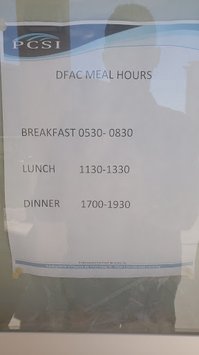Read moreIt’s a DFAC. You signed a dotted line to enter. It’s not fantastic the hours could use help. The food is DFAC. The colors never matter. Breakfast is the same. The staff is great people. They smile at you. Don’t listen to people who say it’s closed. They do work through tornados. Get ya chow and gains. Go during middle hours. Make sure you eat. Oh the milk is out a lot of the times. Same with that fruit juice. Some days they’re missing Ketchup or hot sauce. So be prepared to go eat dry or bring ya own sauce. As they say not my chair not my problem. Yea right. They call you when people need a knot tie? Mr.Captain tying knots. No way. No how. Not never. I’ll be back I’ll try...