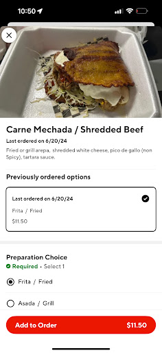 This is the best Venezuelan food truck in the area. I keep ordering the pernil arepa every time I visit because it is so tasty and satisfying. The cornmeal patty is crispy on the outside and perfectly soft on the inside. The roast pork is perfectly seasoned, sweet (in a savory way) and tender. The condiments complement the pork perfectly.